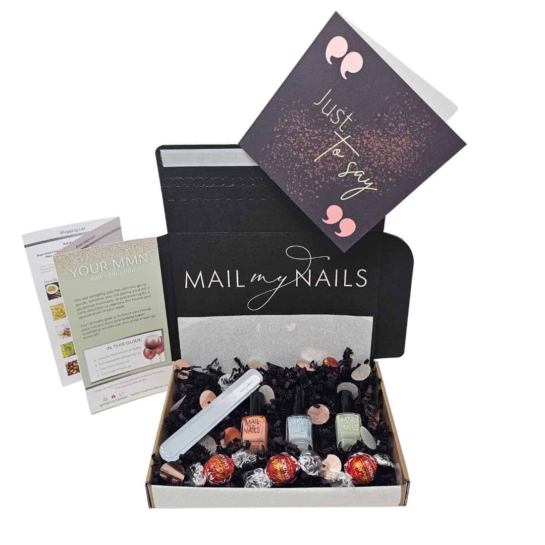Our gel-like nail polishes give that satin finish, our glass nail file is gentle on natural nails, and our (5-page) nail care guide provides tips to improve the health and appearance of our natural nails, as well as achieve that gorgeous home manicure - salon free!